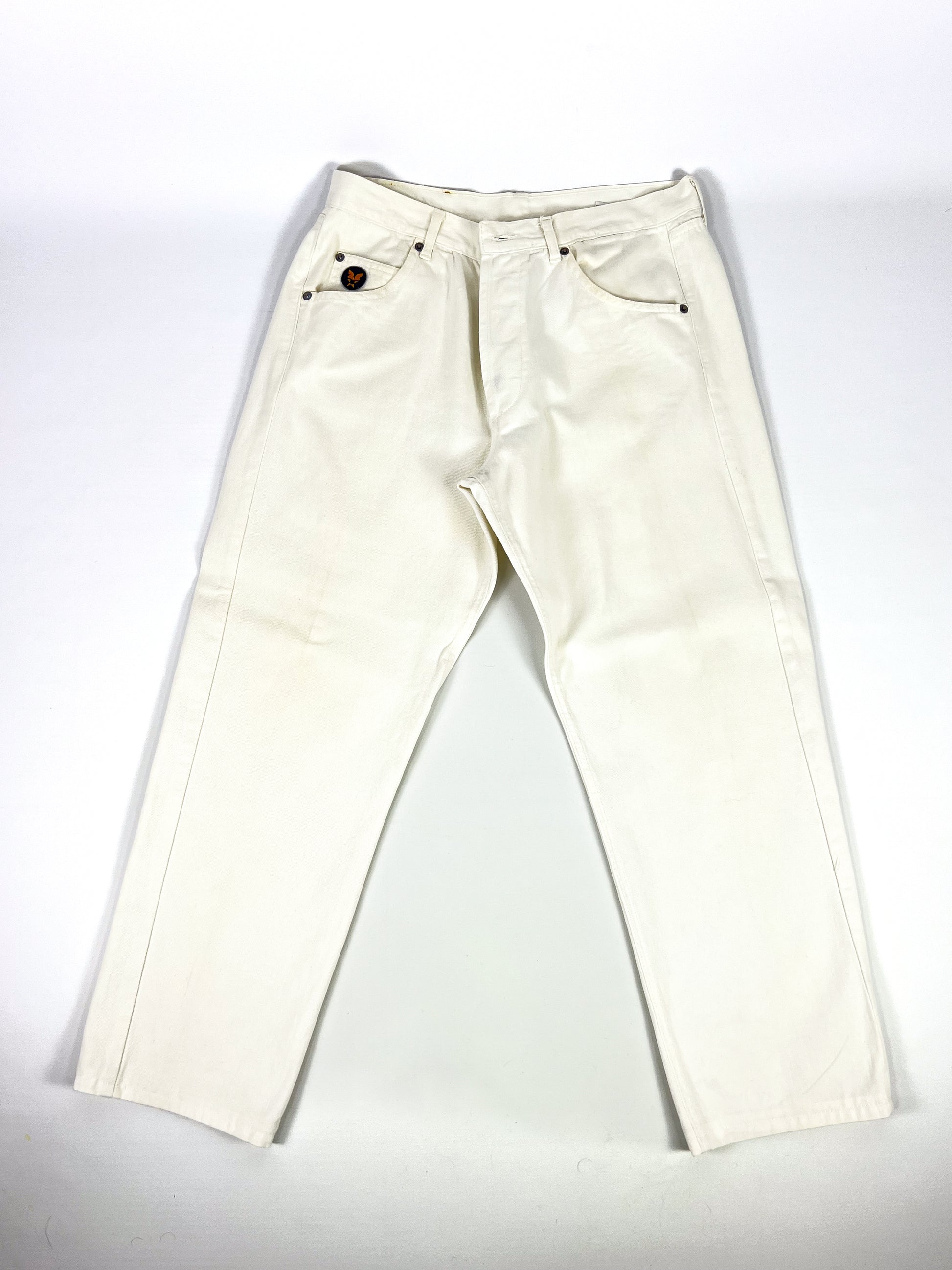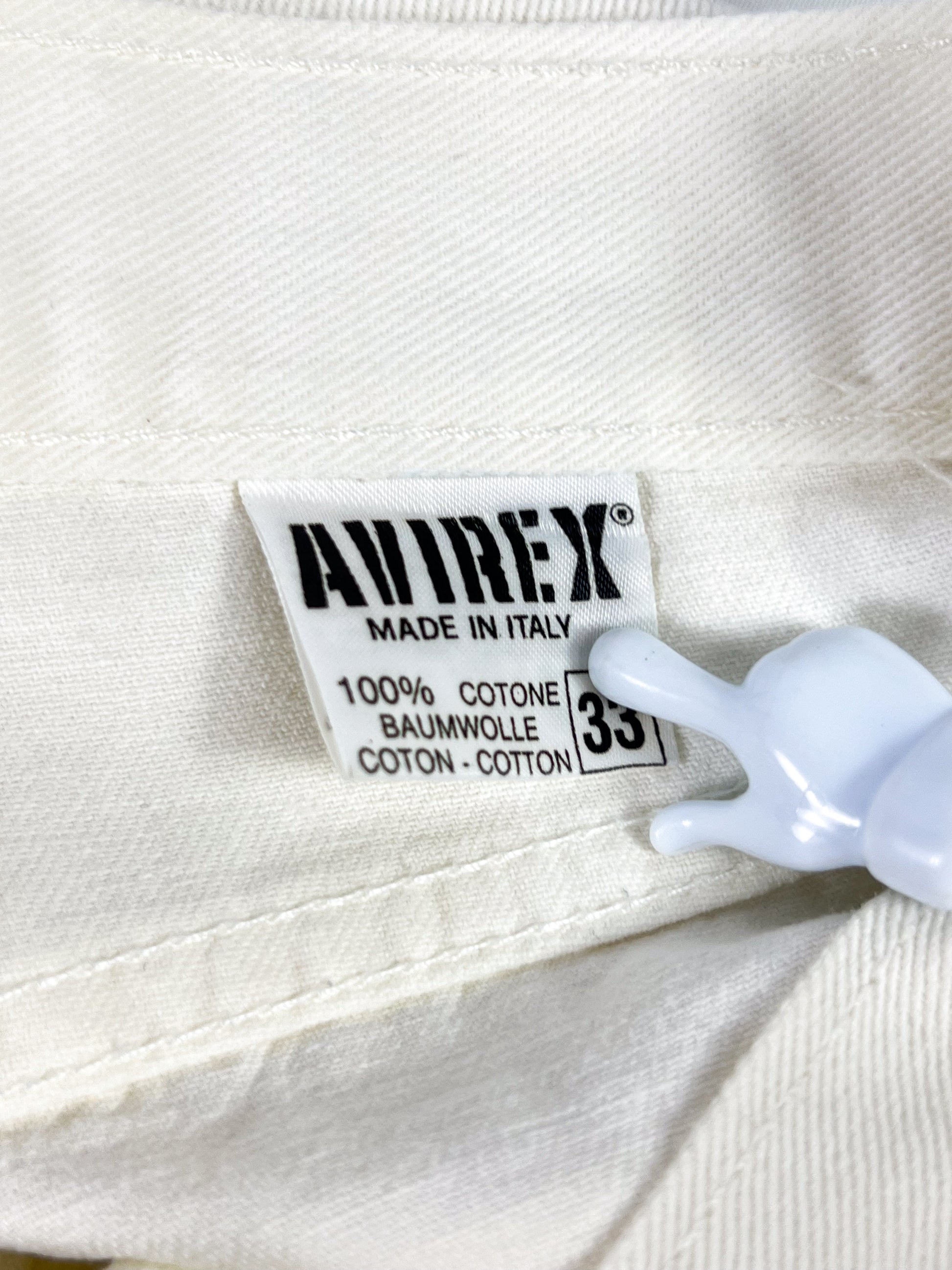Jeans Avirex vintage, Made in Italy, realizzati in 100% cotone. Modello a vita regolare, gamba dritta con costruzione robusta.