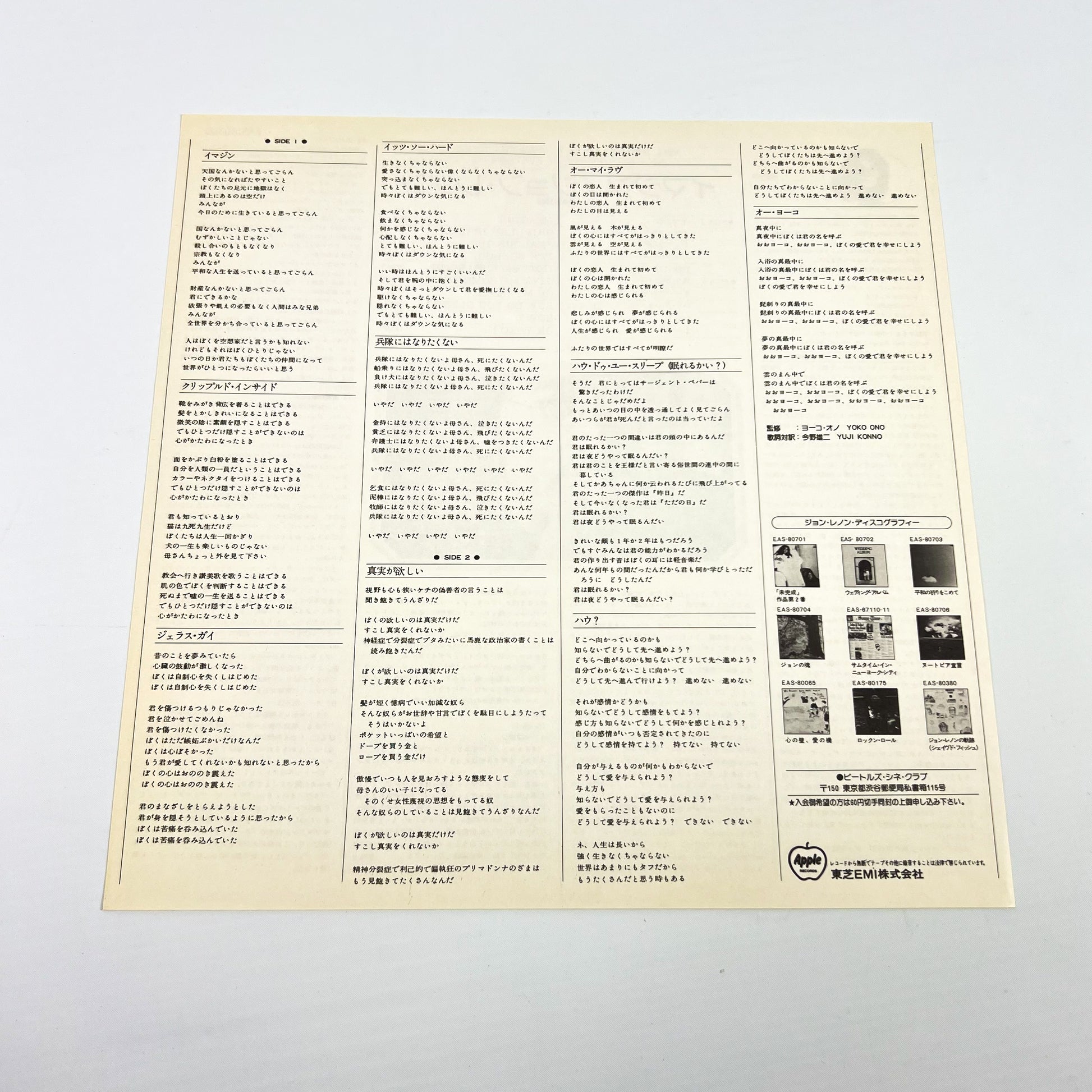 JOHN LENNON – Imagine (Presse japonaise) – Apple EAS-80705 1977 - Intégrale