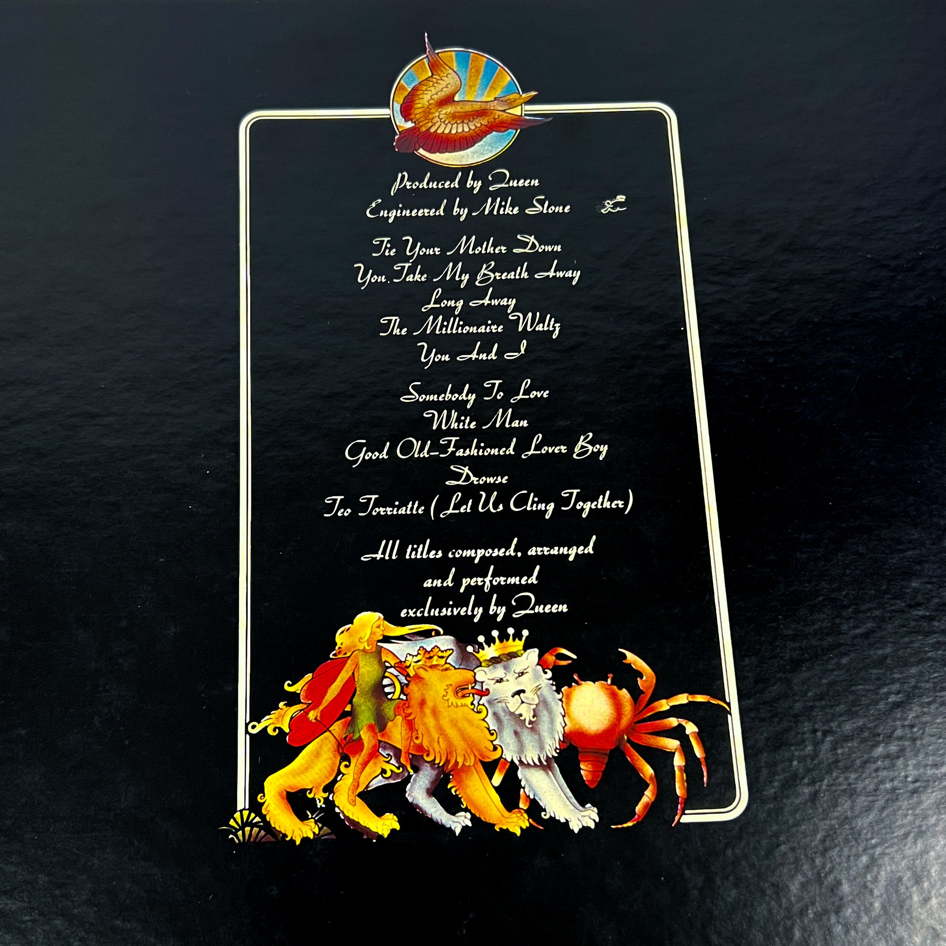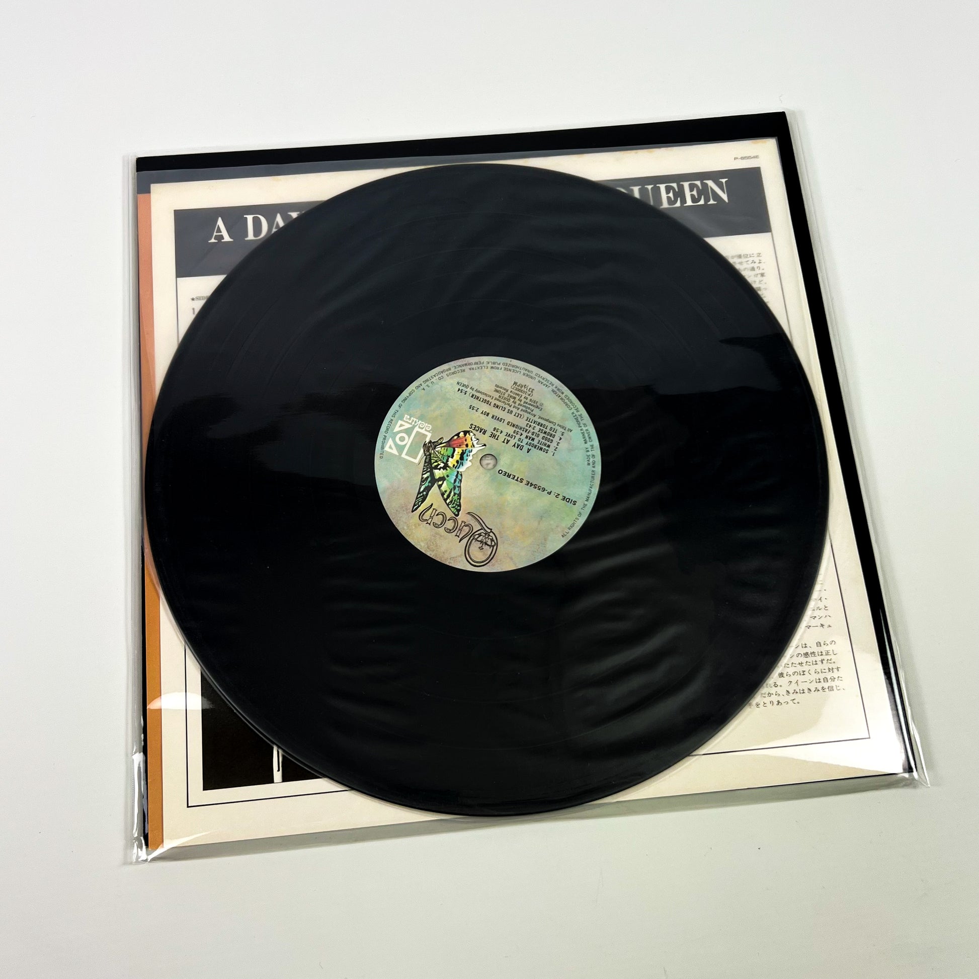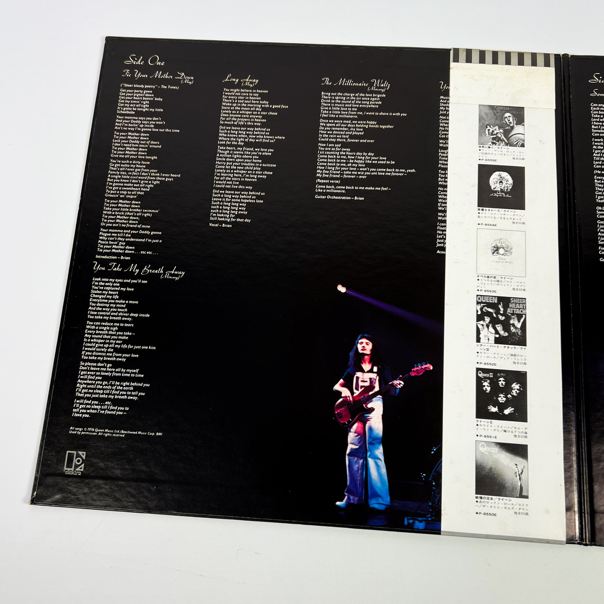 Pressage japonais de l'album « A Day At The Races » de Queen, sorti par Elektra/Warner-Pioneer Japan en 1981 sous le numéro de catalogue P-6554E, avec l'OBI gris original de 2 000 ¥.