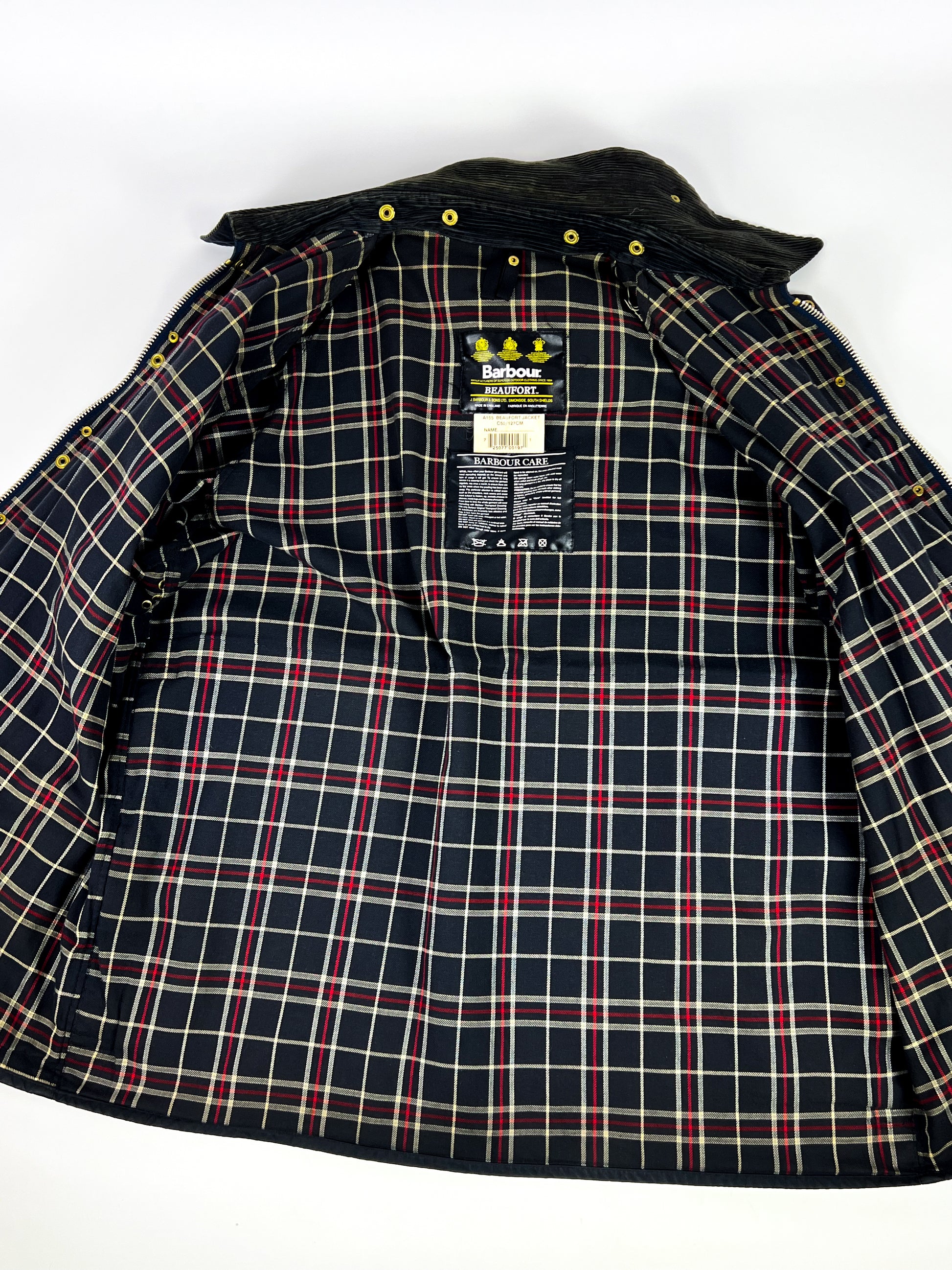 Giacca Barbour Beaufort del 1997, modello iconico dell’heritage britannico, realizzata in cotone cerato e prodotta in Inghilterra. Capo pensato per l’outdoor e la vita di campagna, caratterizzato dalla classica costruzione robusta e funzionale del marchio. Collo in velluto a coste, chiusura frontale con zip e bottoni automatici, ampie tasche frontali e tasca posteriore da caccia. Interno con tradizionale fodera tartan Barbour.
