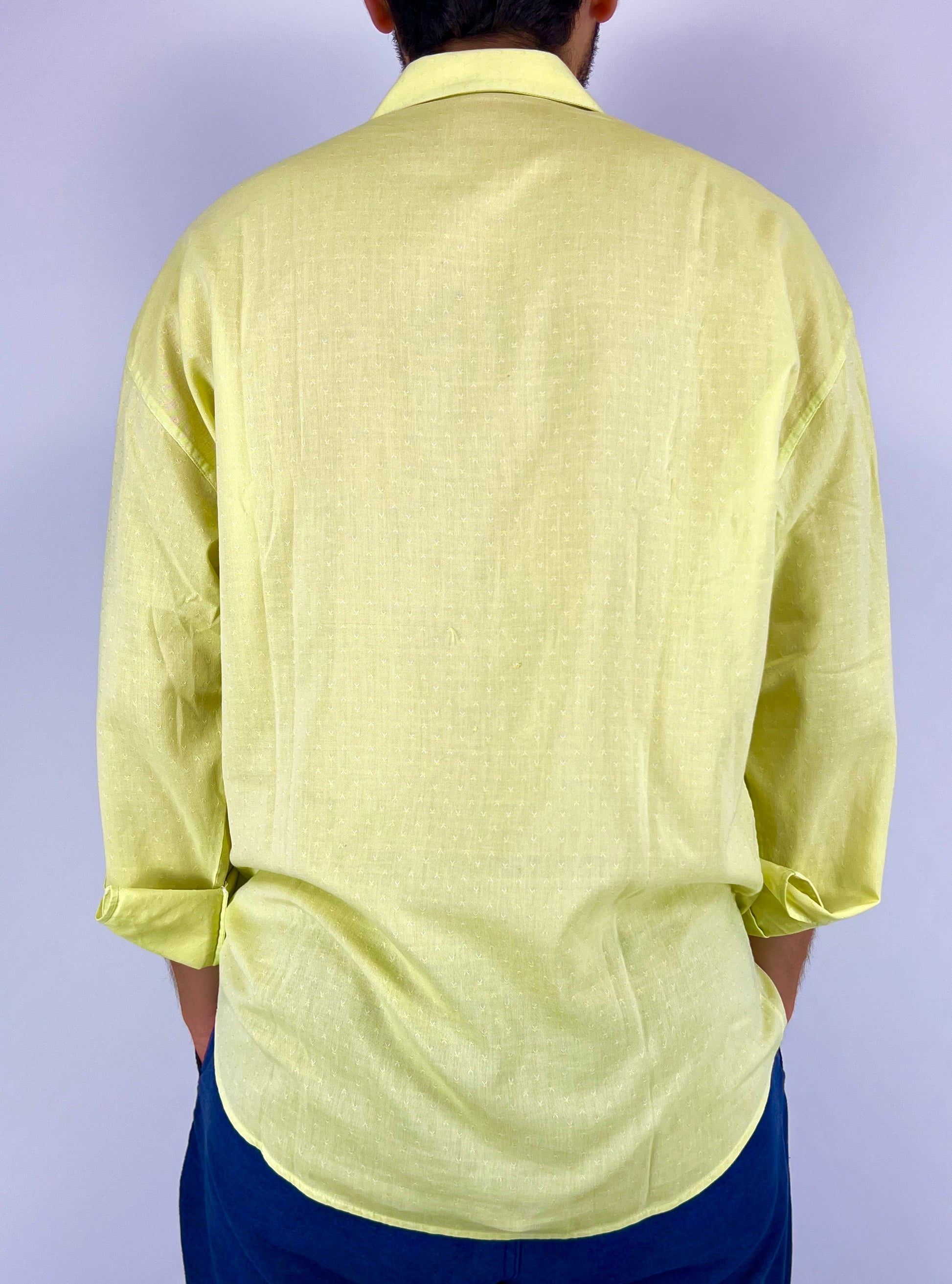 Favolosa camicia Gianni Versace Couture anni '80, in cotone color giallo limone ricamato ed ampio taschino, un pezzo unico.