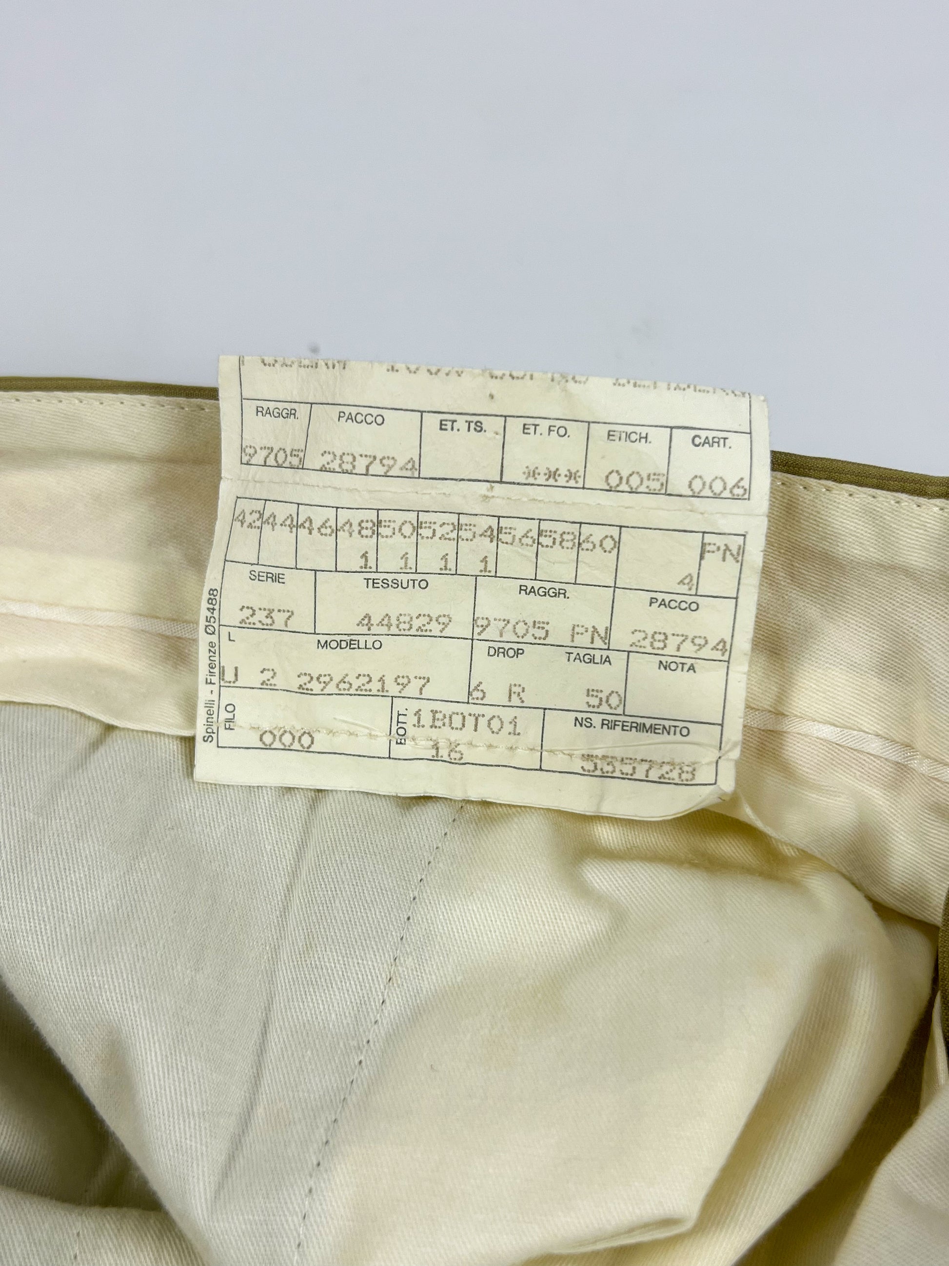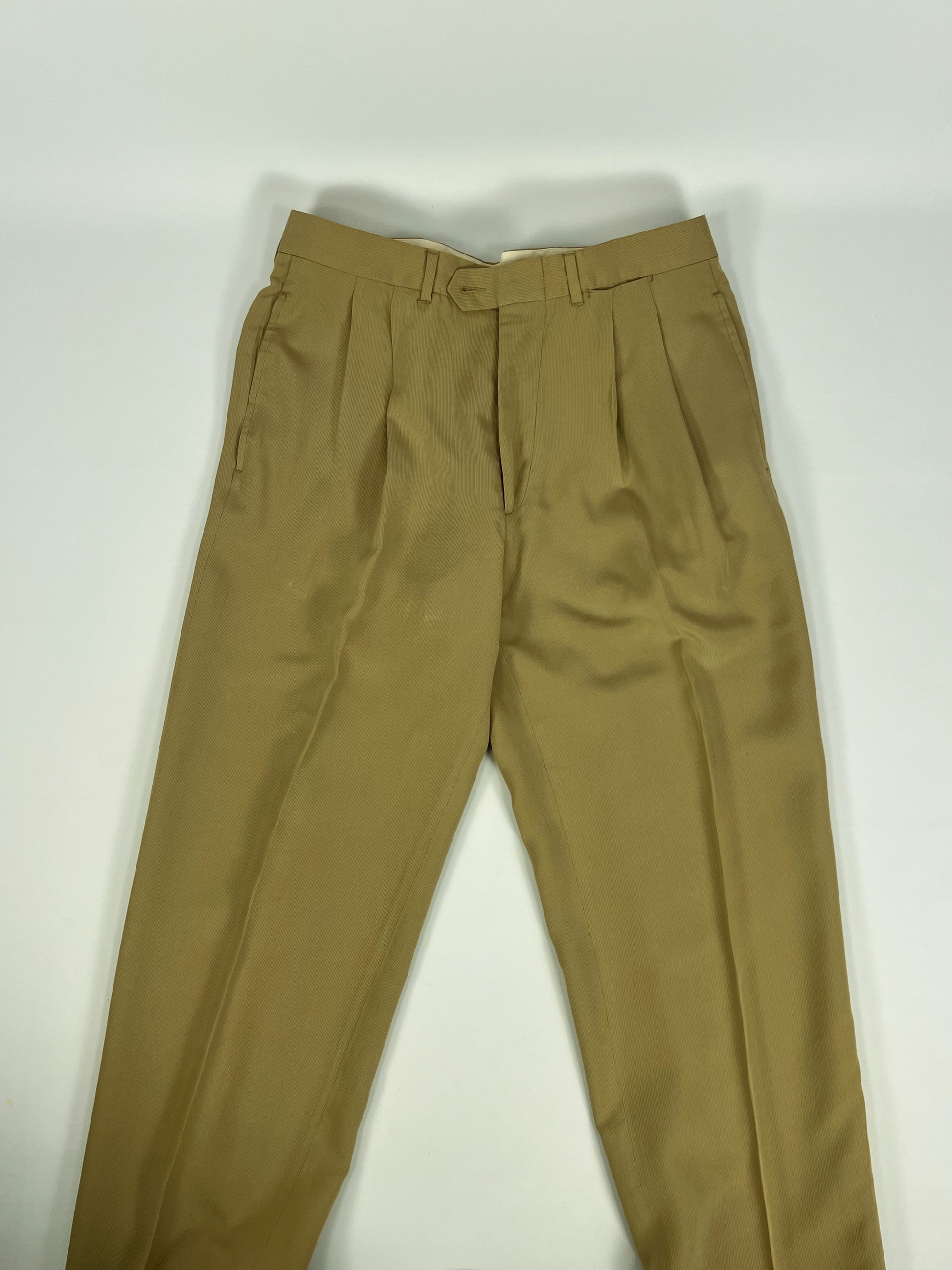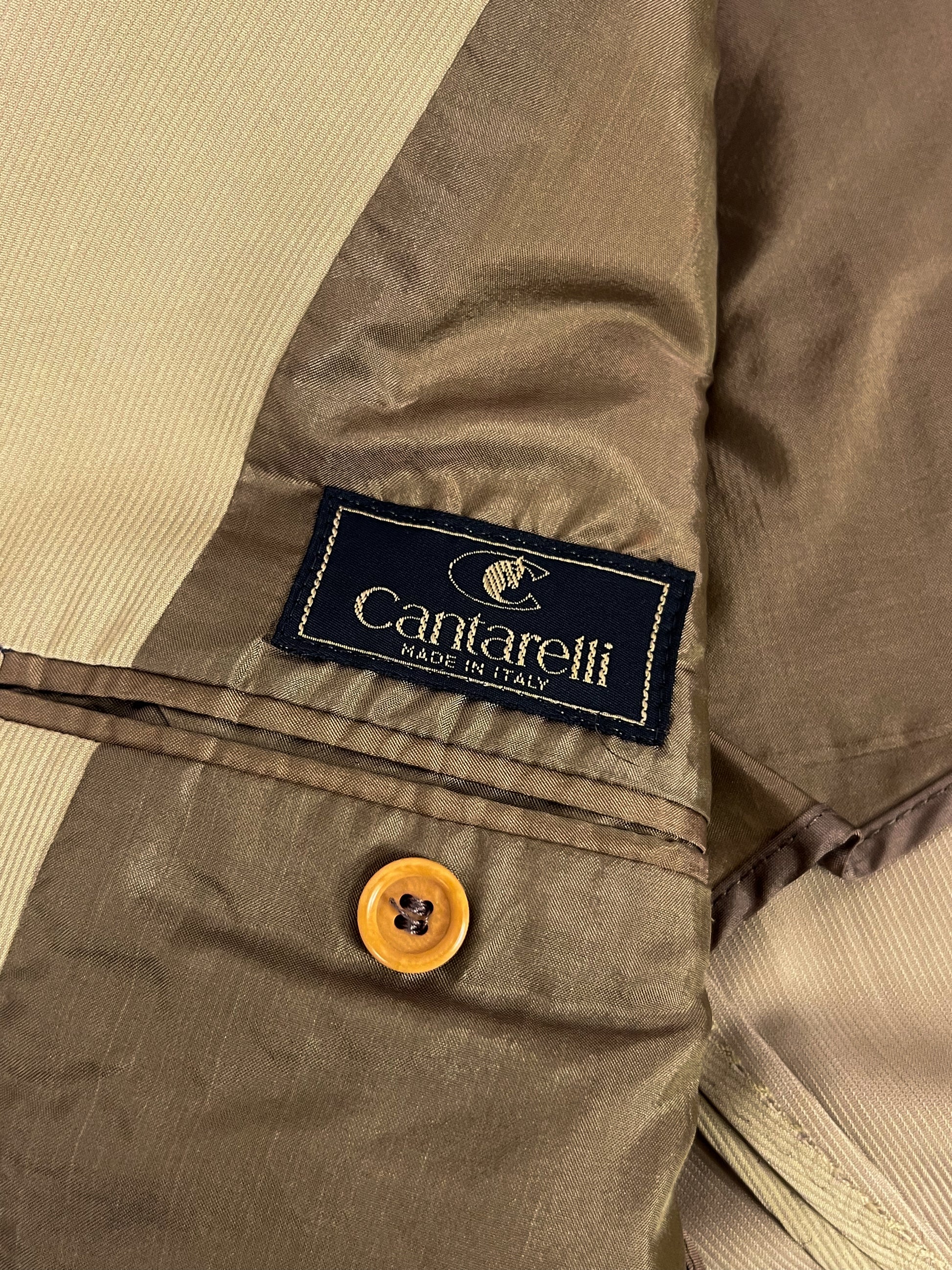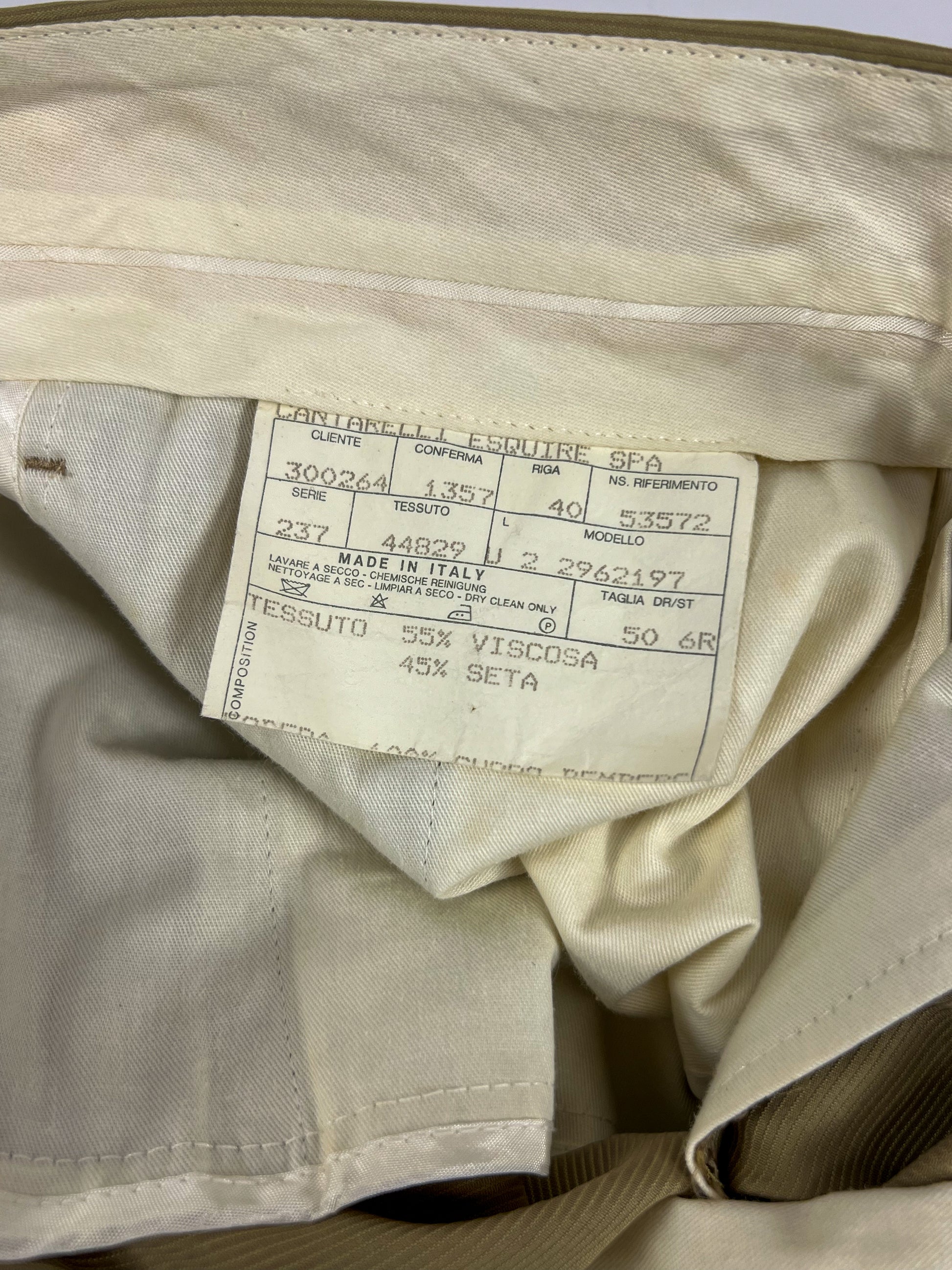 Completo vintage Cantarelli in misto seta, elegante e raffinato, caratterizzato da un colore verde oliva chiaro.