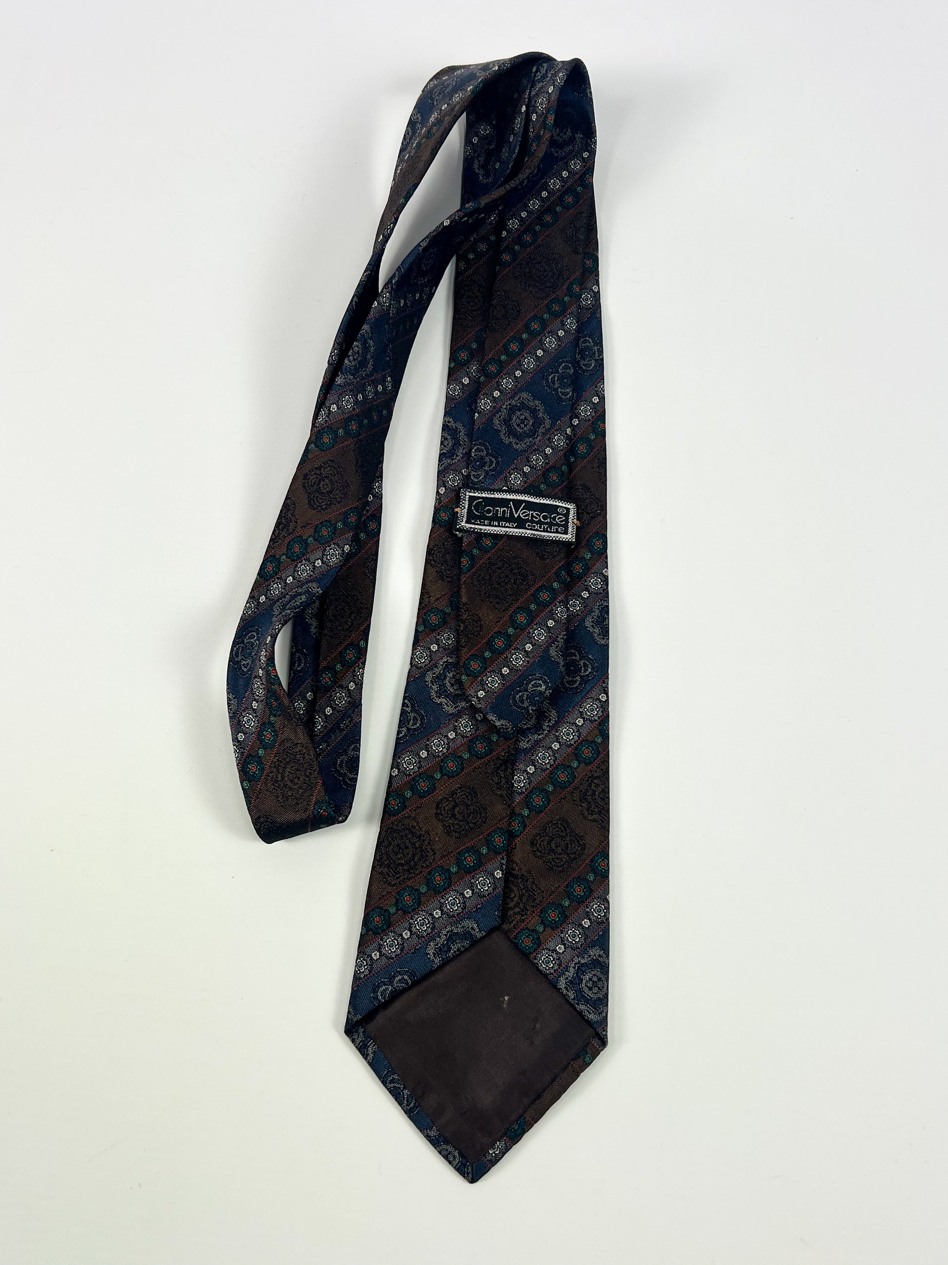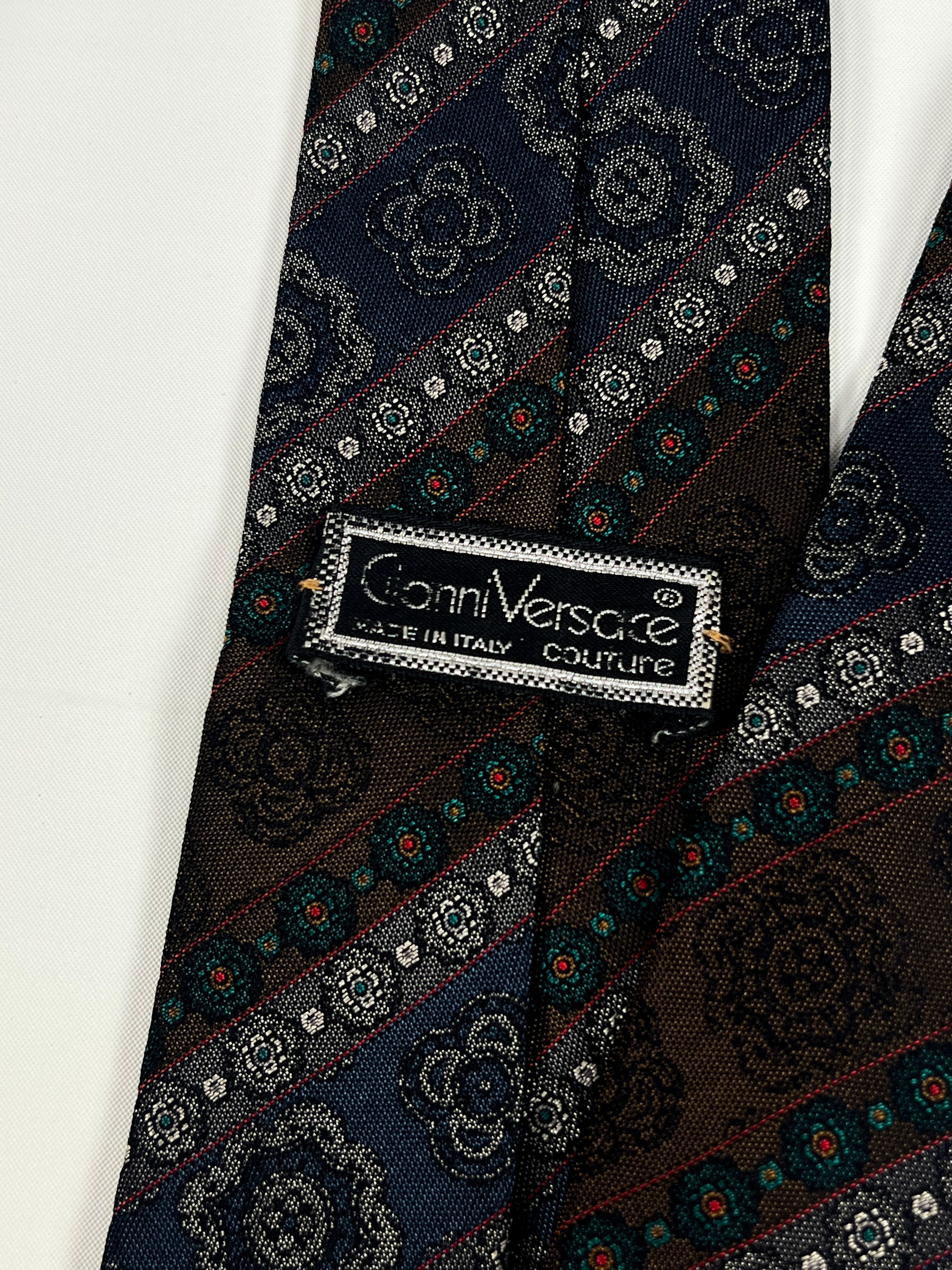 Cravatta Gianni Versace vintage appartenente alla linea Couture, la più pregiata e iconica dello stilista, realizzata con grande cura nei dettagli e materiali di alta qualità.