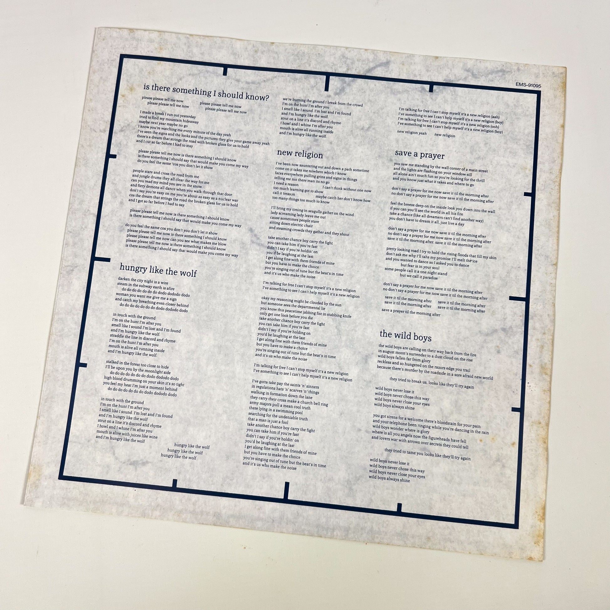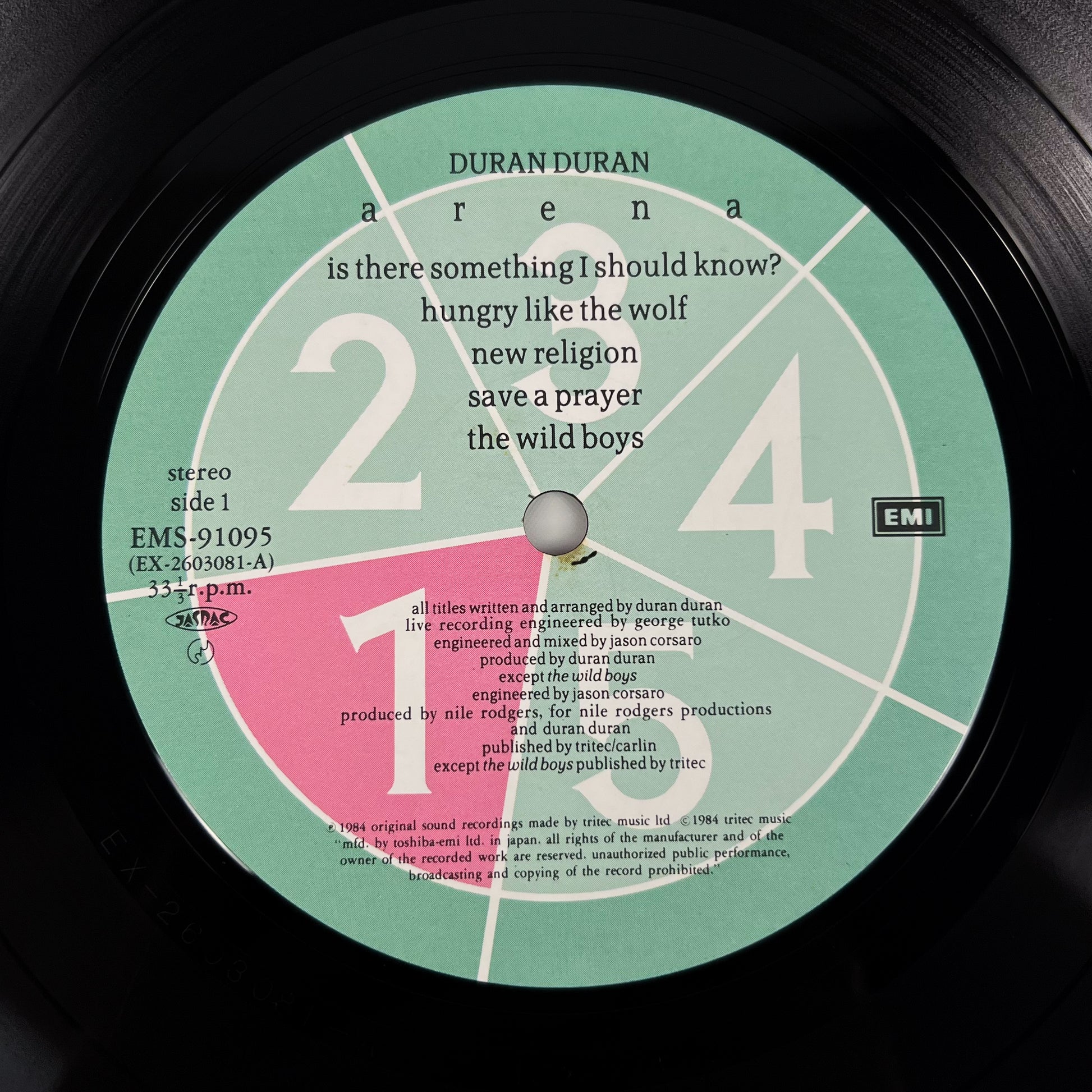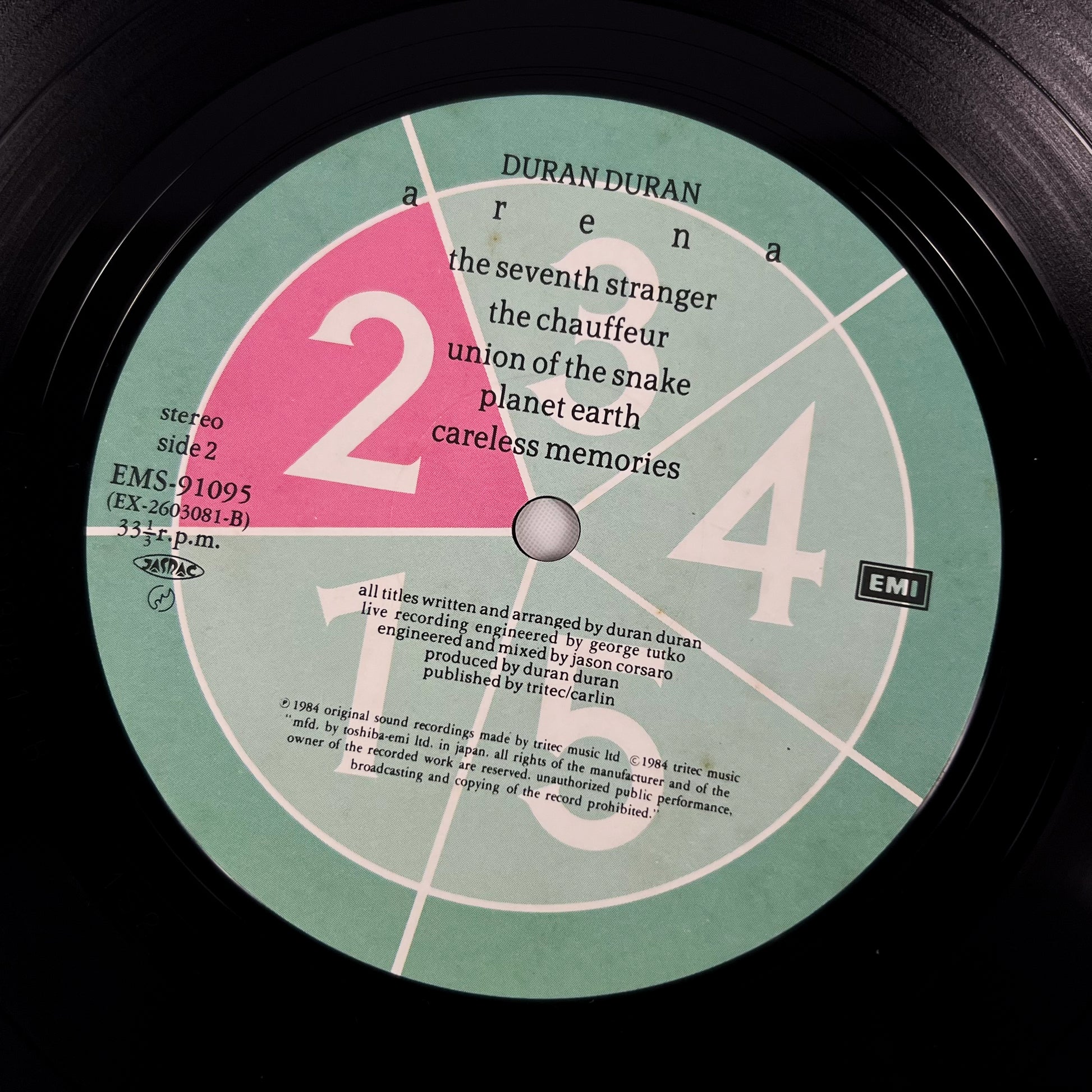Prima stampa giapponese del 1984 di “Arena”, album live dei Duran Duran pubblicato da EMI / Toshiba EMI con codice catalogo EMS-91095, completa di OBI originale da ¥2.800.