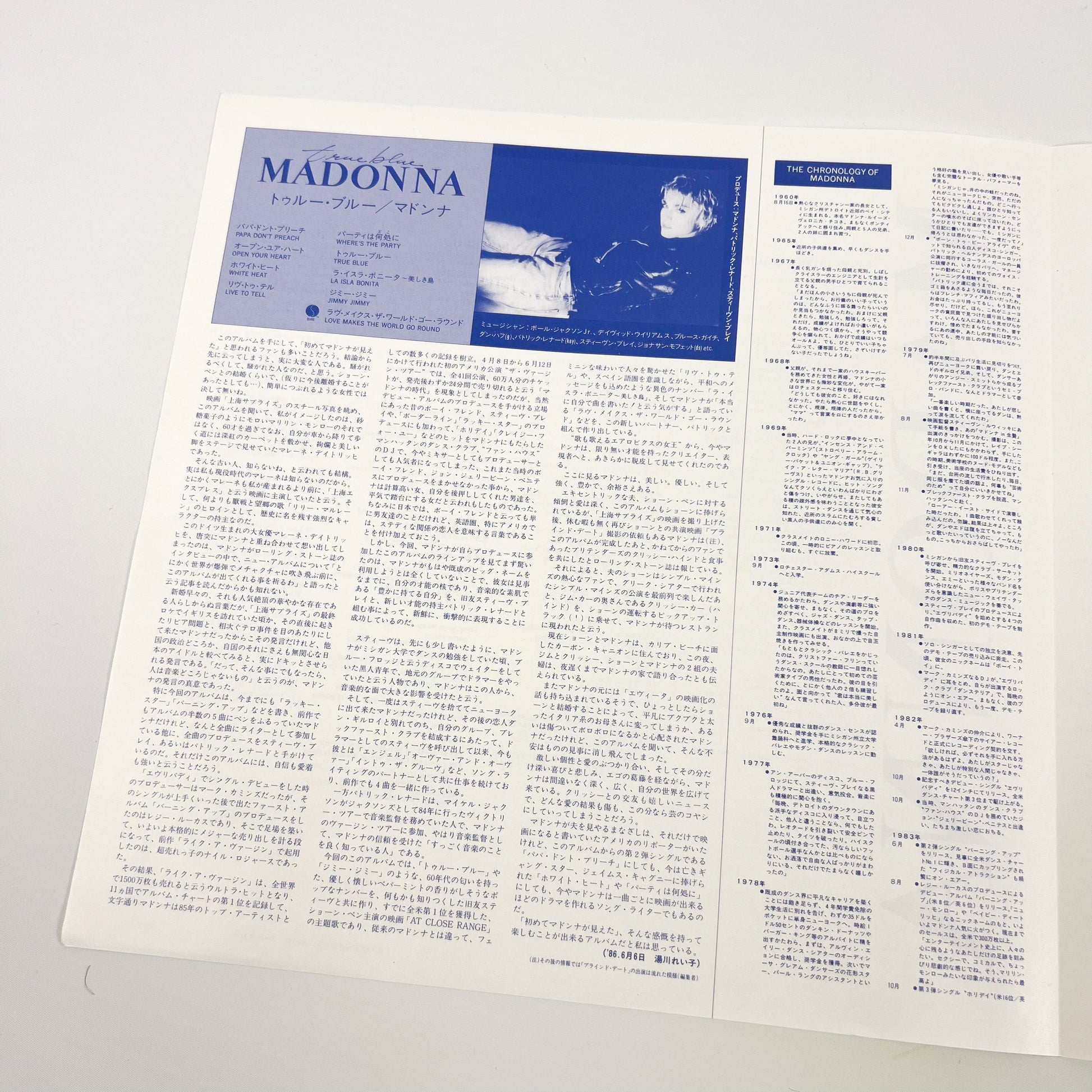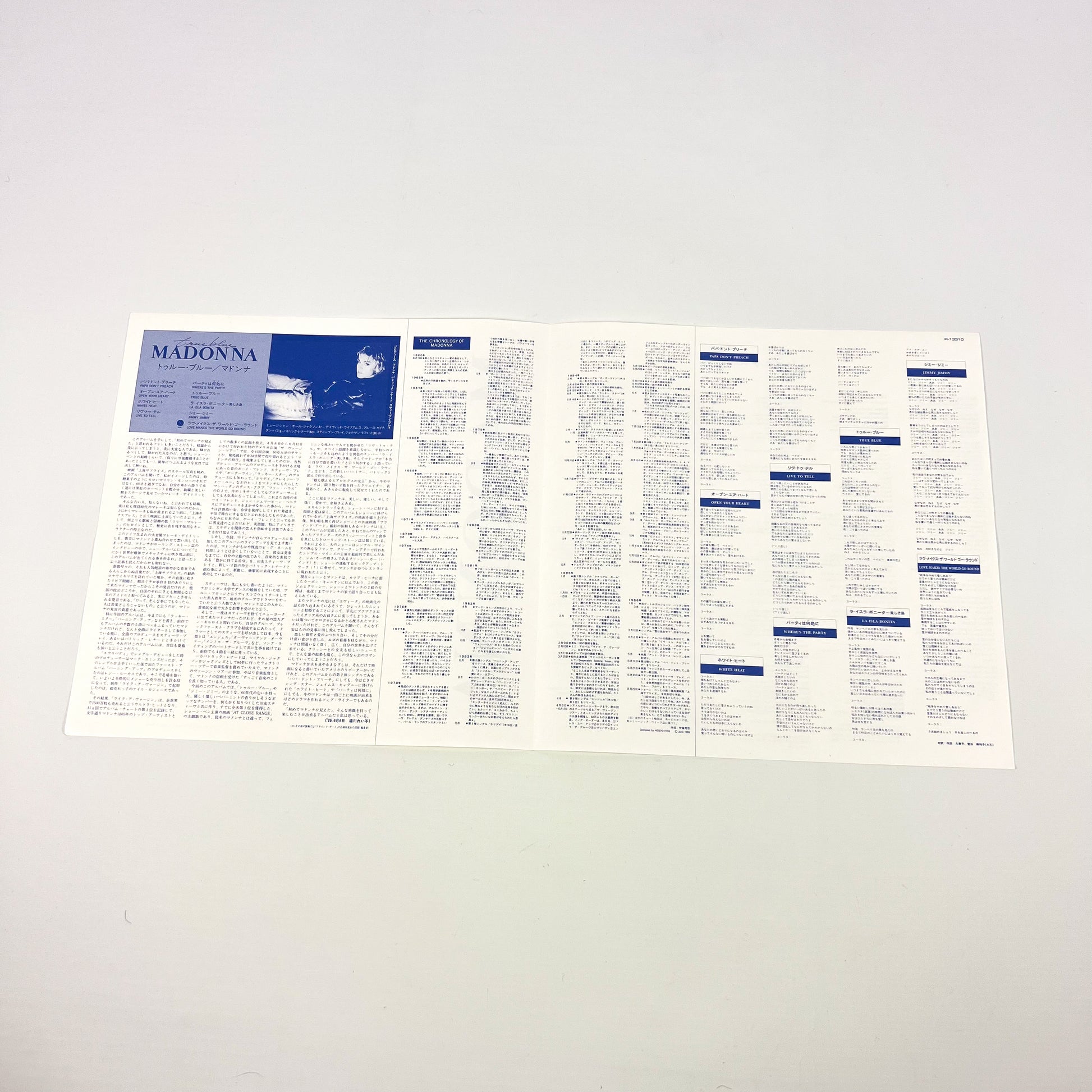MADONNA – True Blue 1ª Edizione Giapponese - Warner Pioneer P-13310 1986 PROMO