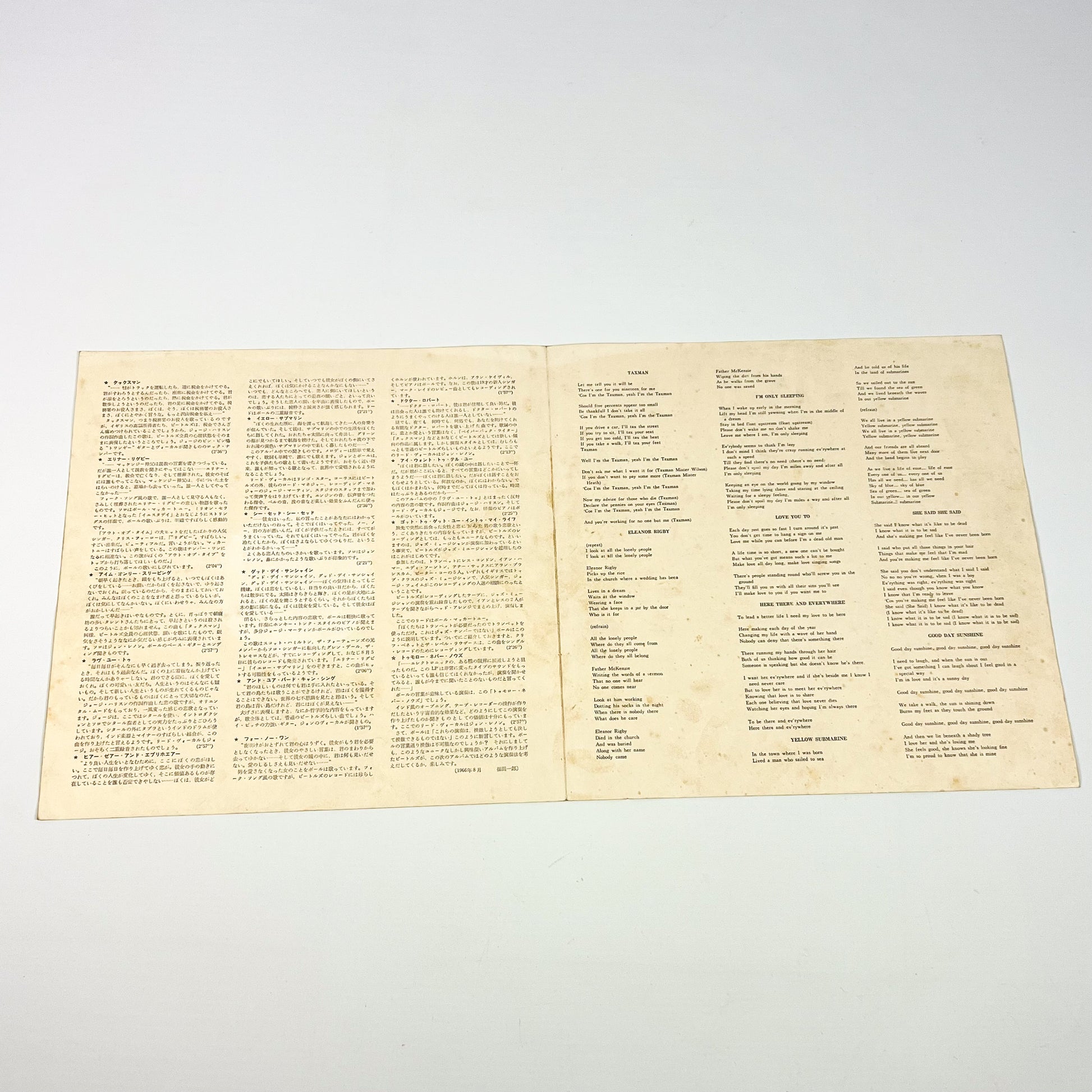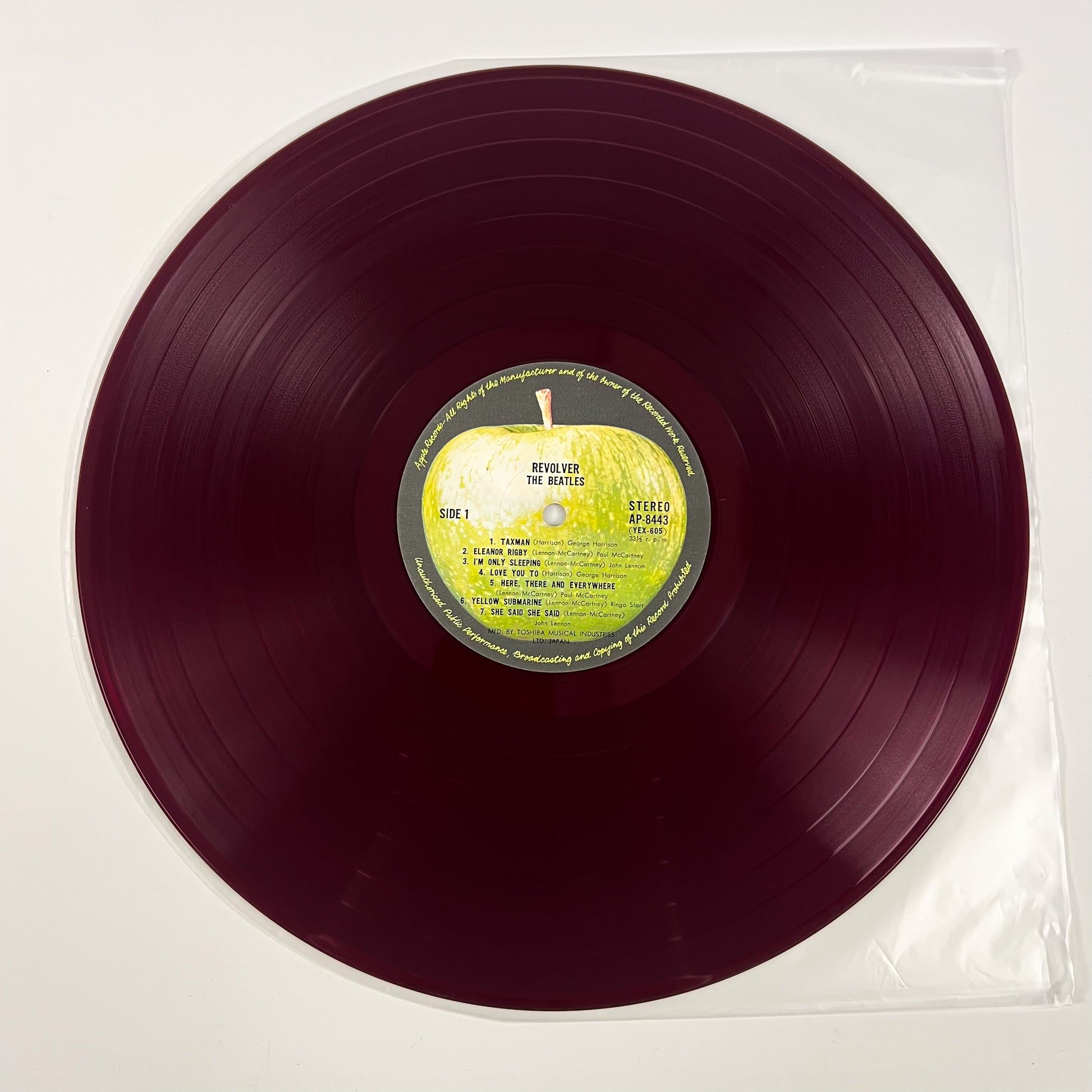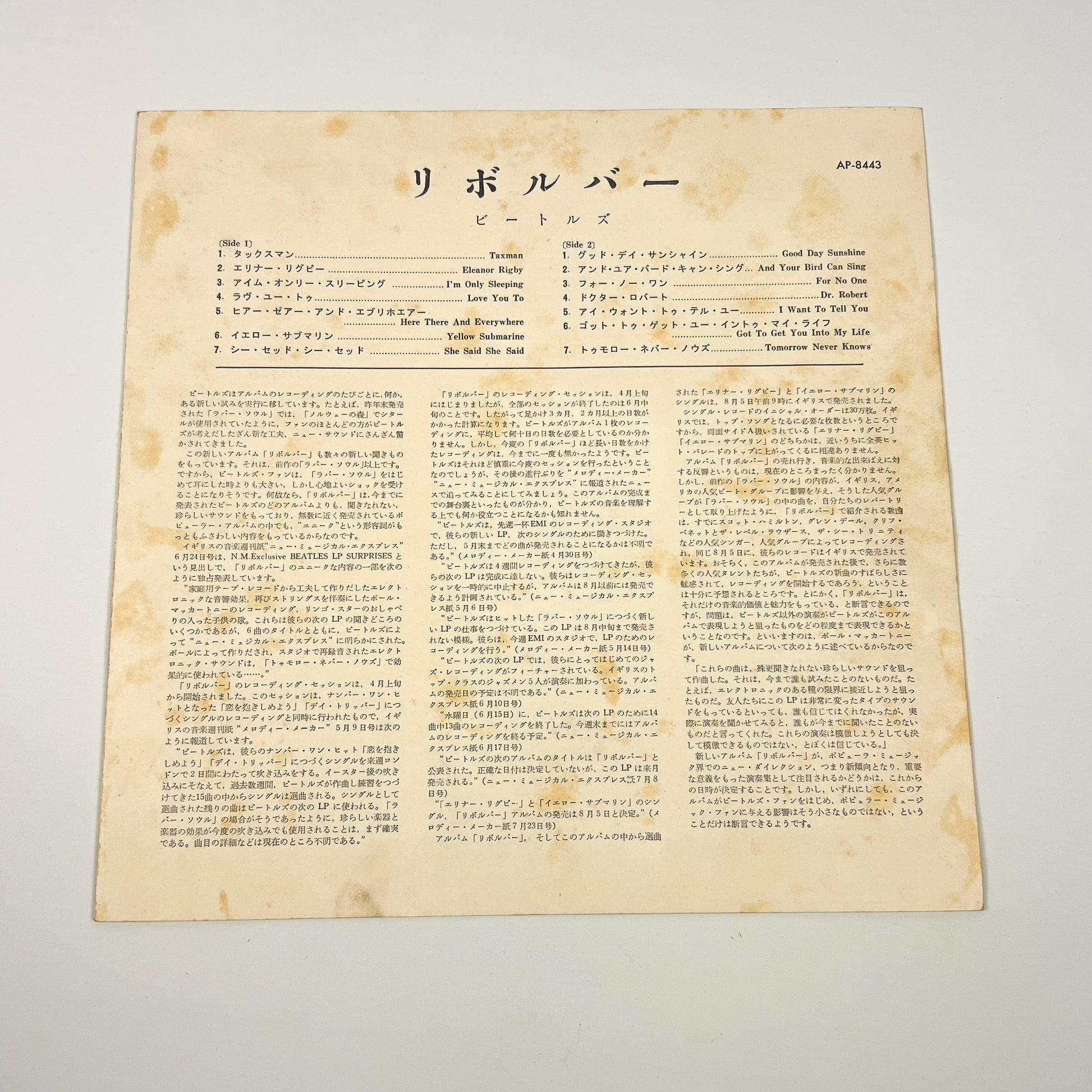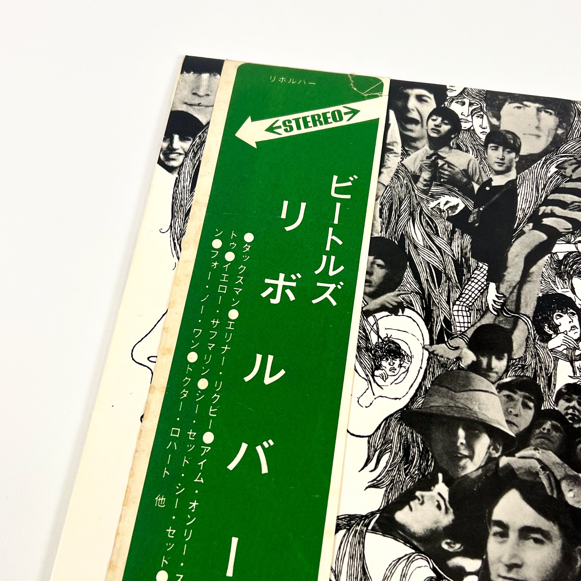 Stampa giapponese del 1969 dello storico album “Revolver” dei The Beatles, pubblicata da Apple Records / Toshiba Musical Industries con codice catalogo AP-8443, completa di OBI verde originale da ¥2.000.