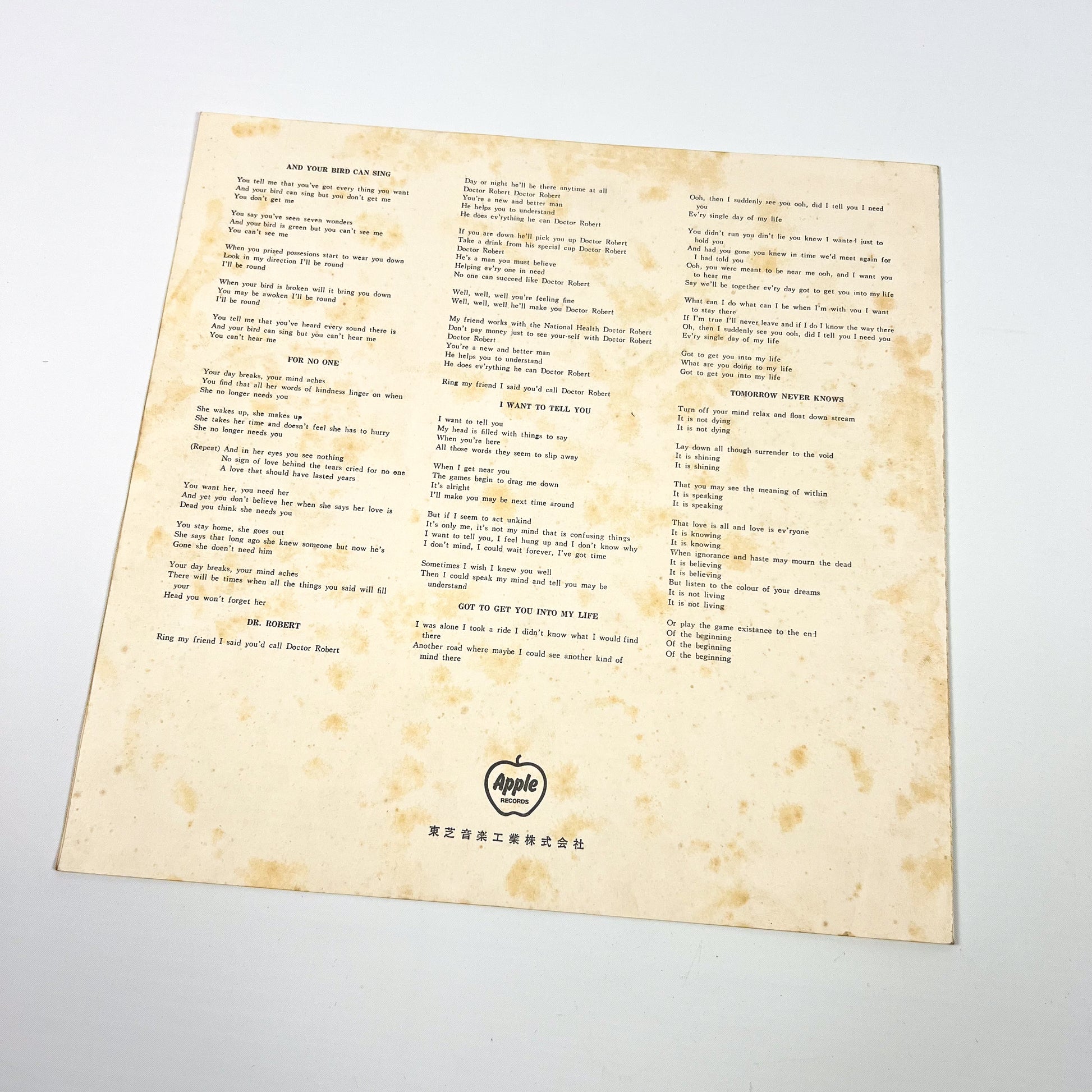 L’album si presenta con copertina con artwork originale in bianco e nero, retro con logo Apple e indicazione “Made in Japan”, completo di OIS (Original Inner Sleeve) e inserto apribile con testi in inglese e traduzioni/liner notes in giapponese.