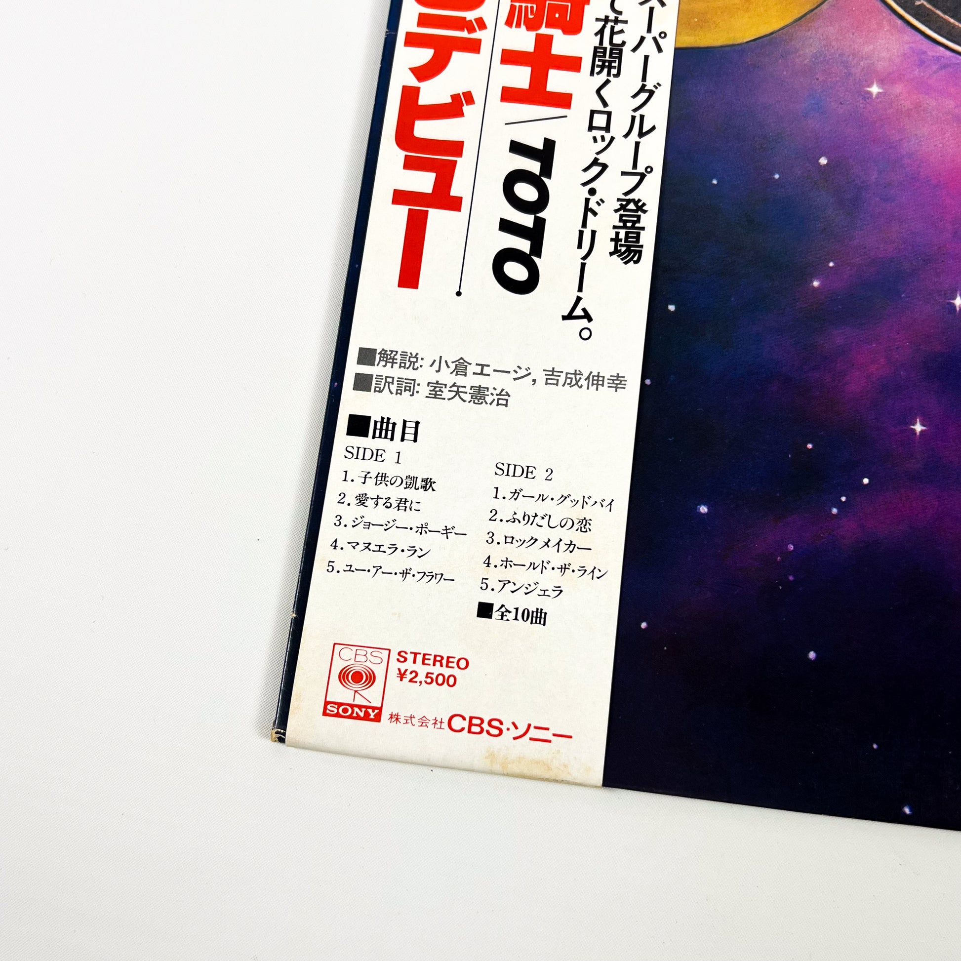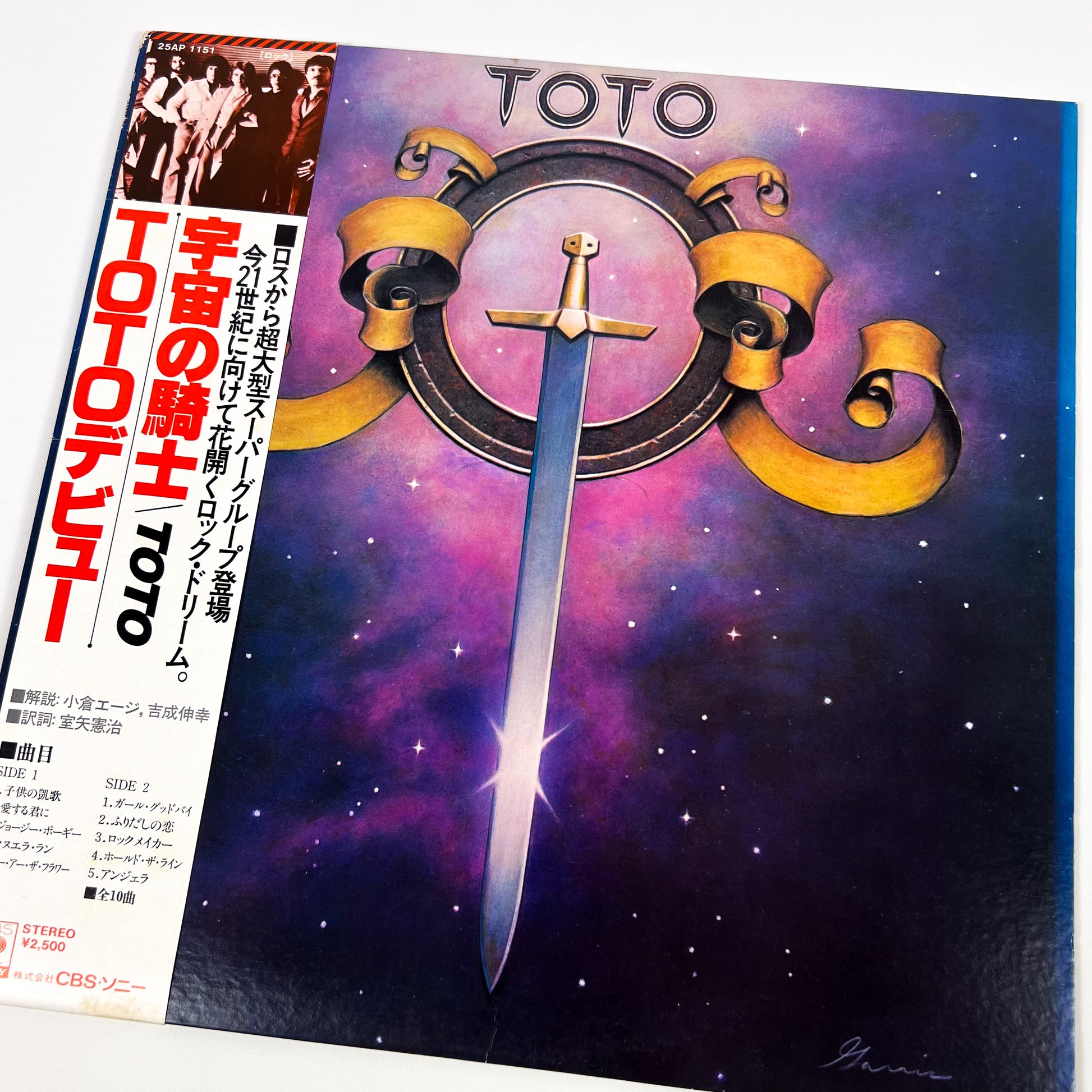 Prima edizione giapponese dell’album “Toto”, pubblicata da CBS/Sony Japan nel 1978 con codice catalogo 25AP-1151, completa di raro OBI bianco originale da ¥2.500.