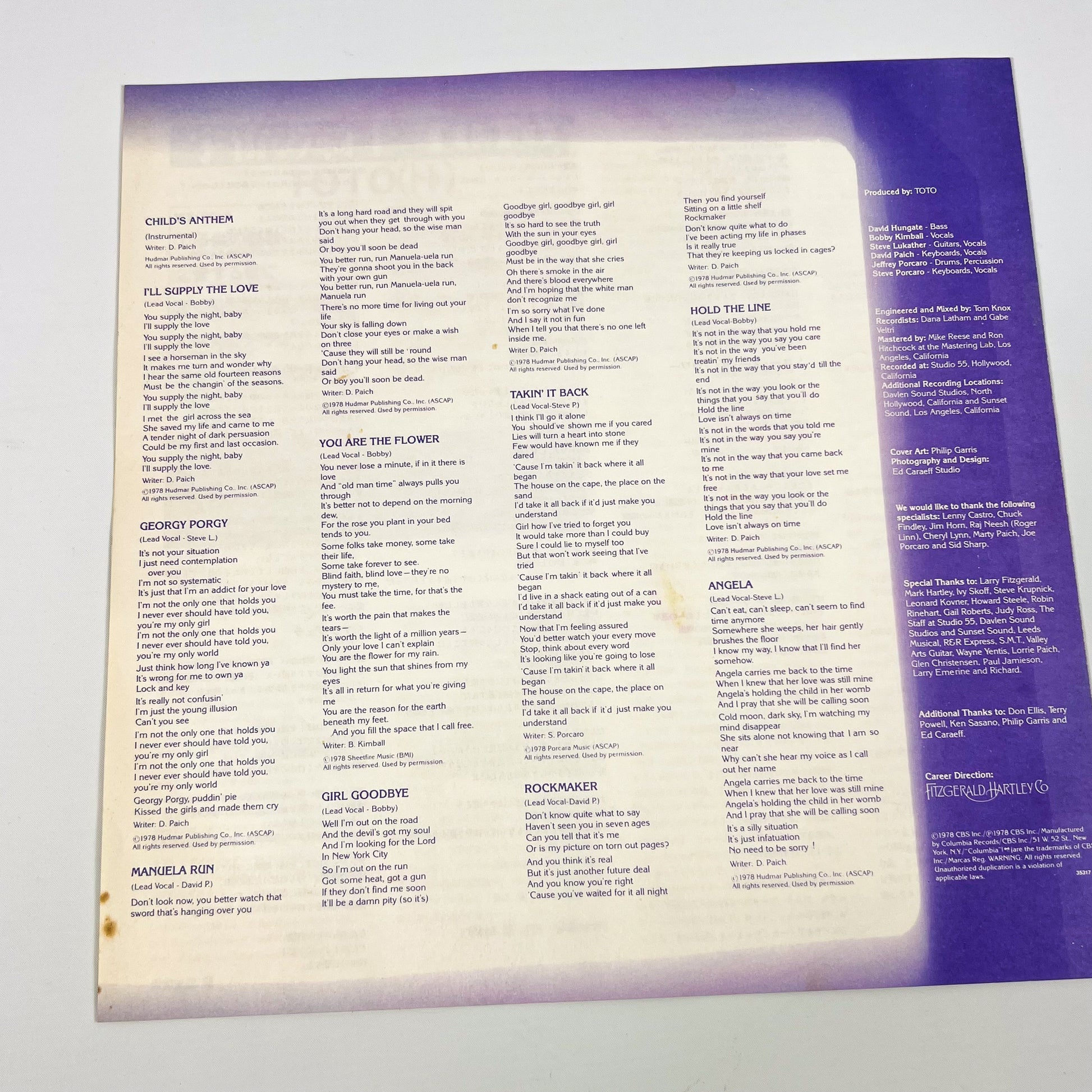 TOTO – Toto 1ª Edizione Giapponese – CBS/Sony 25AP-1151 1978