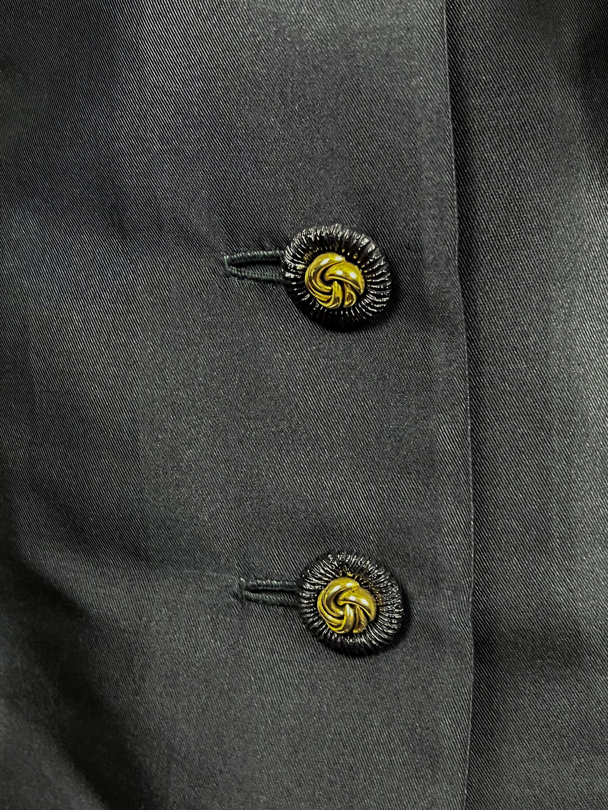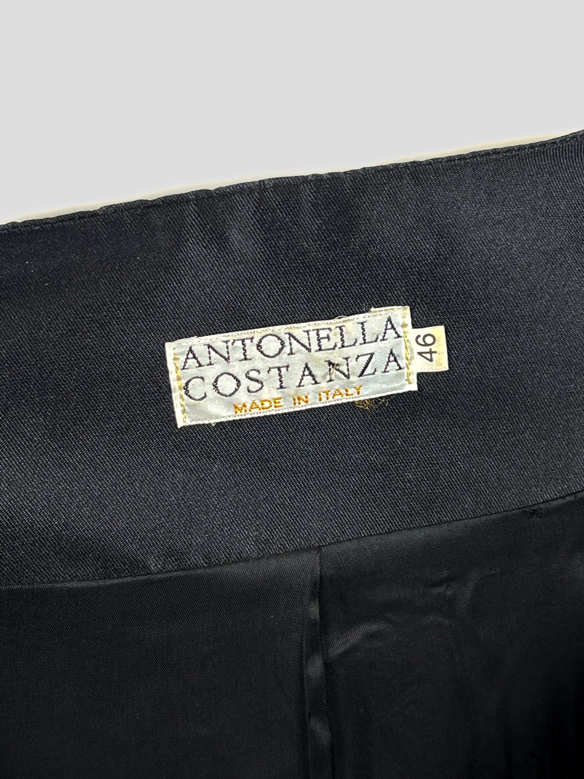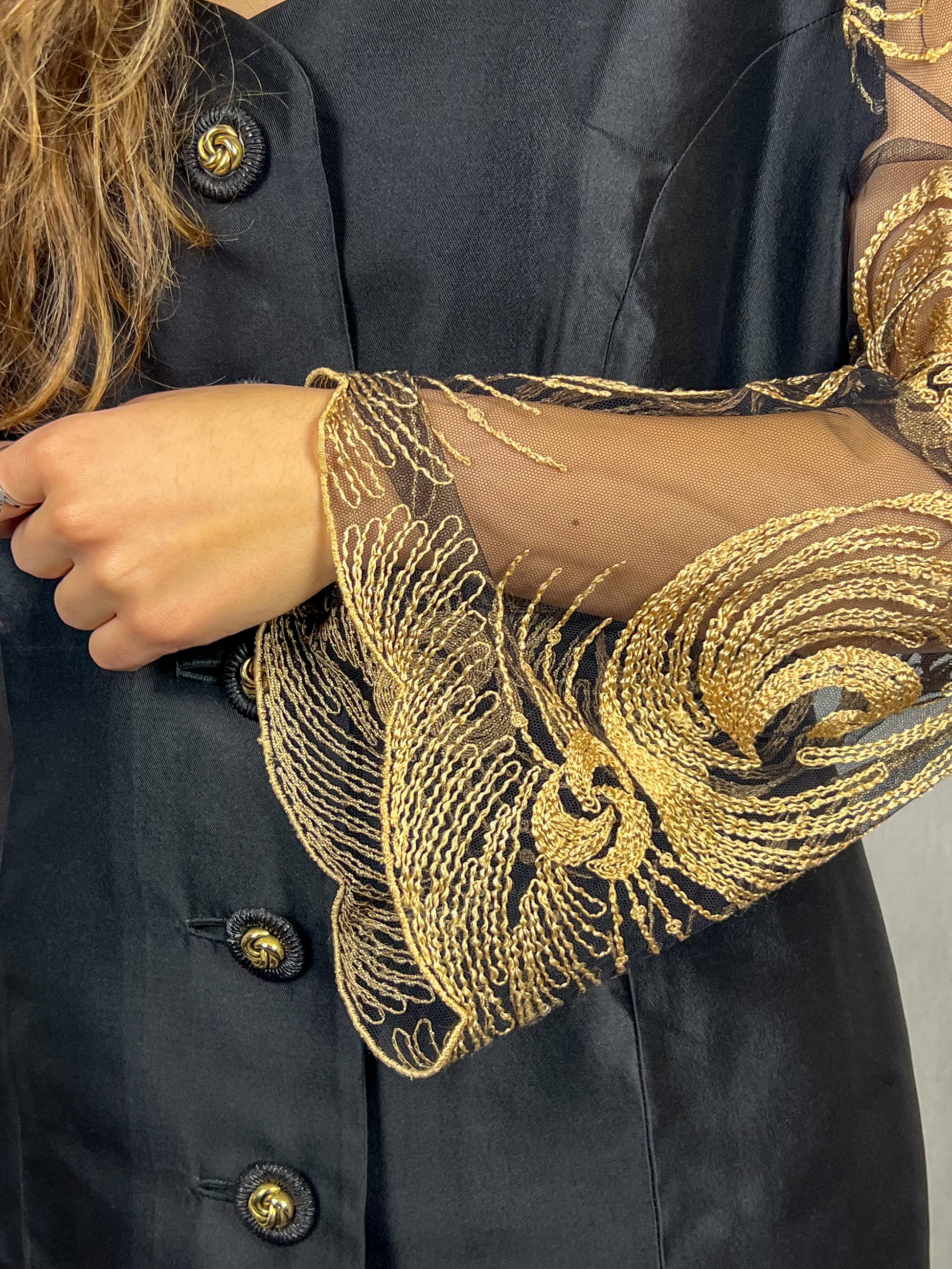Blazer lungo firmato Antonella Costanza realizzato in 100% seta ricamata con dettagli dorati e particolari bottoni